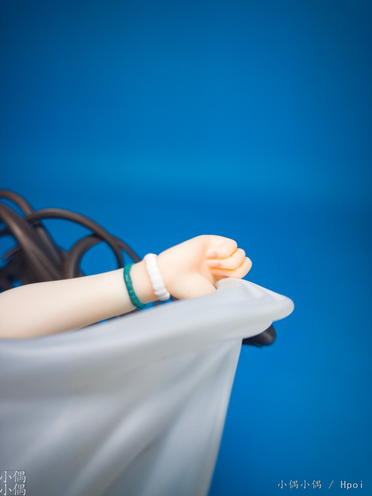 右手则没有臂环,倒是有手链。