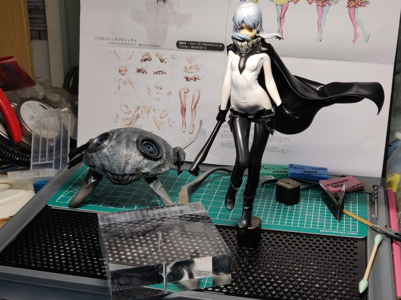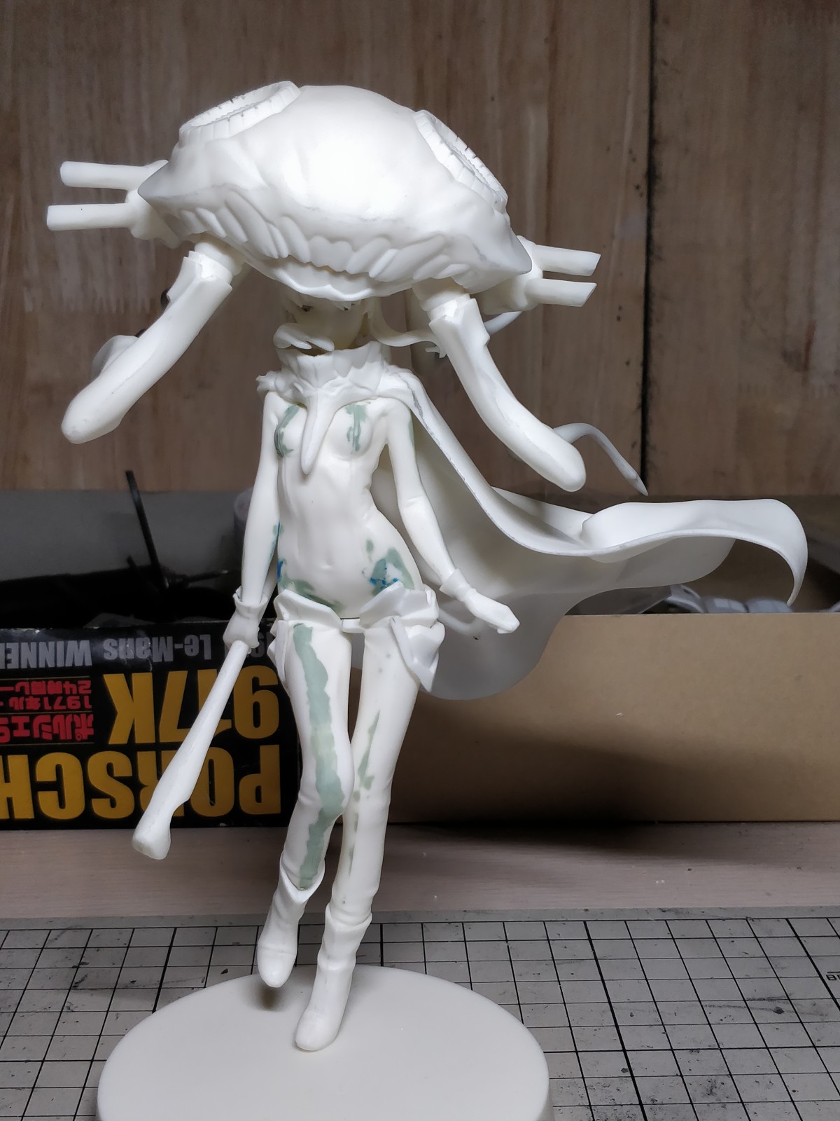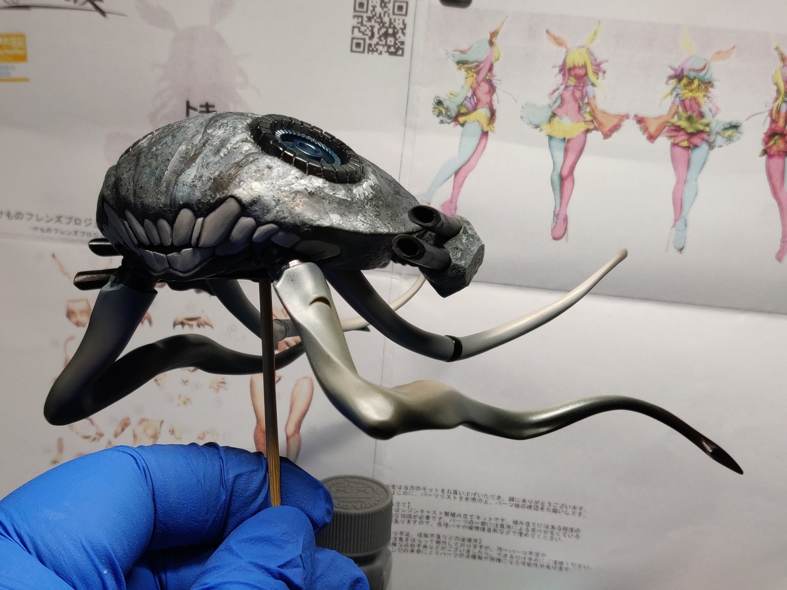 淘宝上直接能买的深海的GK件大部分很凶相或者肌肉感十足,刚好看见这只wo酱造型体态比较温和符合喜好,没想到没有眼睛水帖,大小也比一般PVC成品小很多,刚入坑就要面临修小件涂小脸的难题,搞得拖拉了几个月才完成。