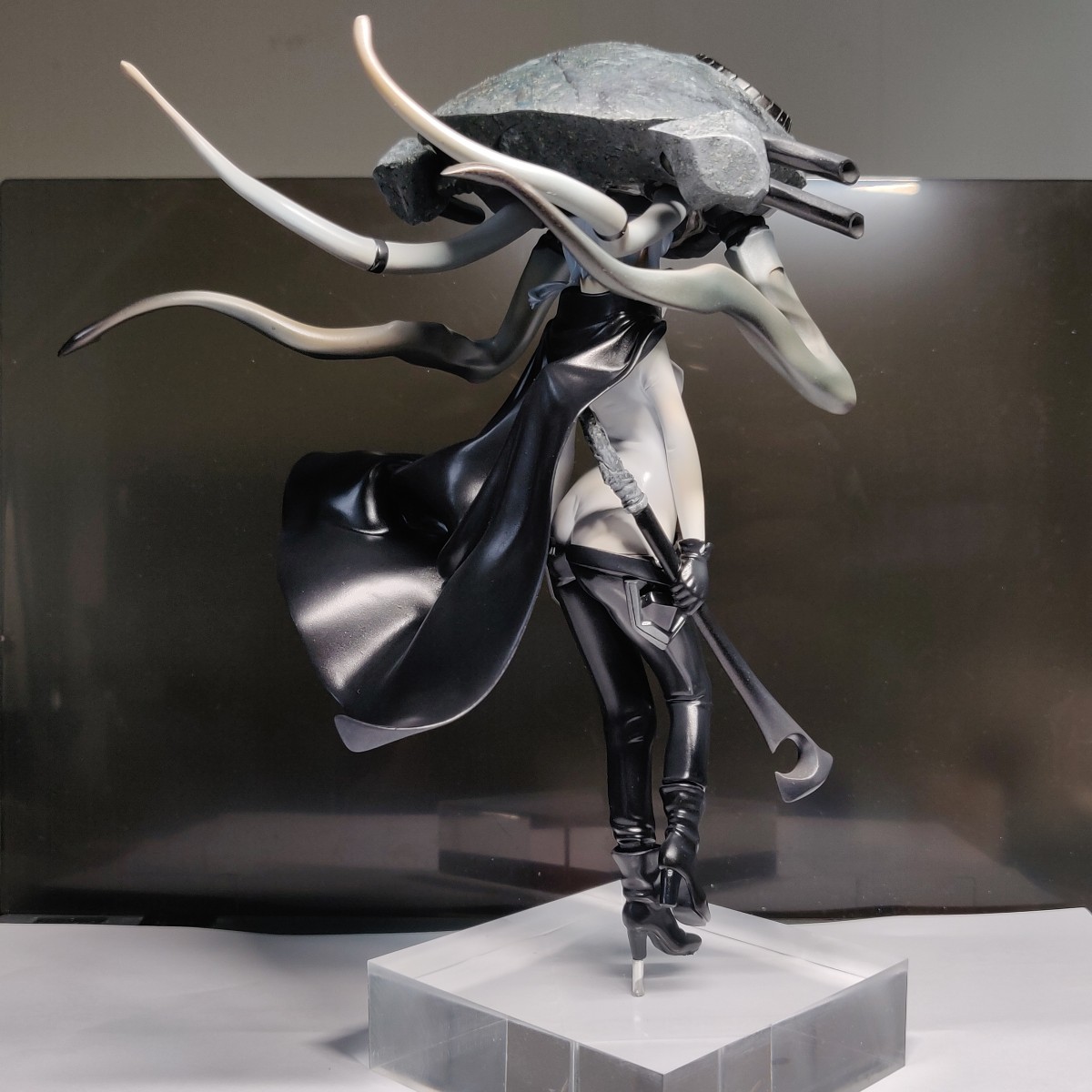 相比舰娘,深海的立绘设定更让我动心。皮革、丝质的紧身衣搭配礁石般的装备和触手元素非常的高冷又色气,刚刚入坑时候收到的GSC的空母ヲ级就是我最爱的手办之一。做了一段时间的模型后打算试试GK人形的坑,入坑作就整一个深海敌舰。